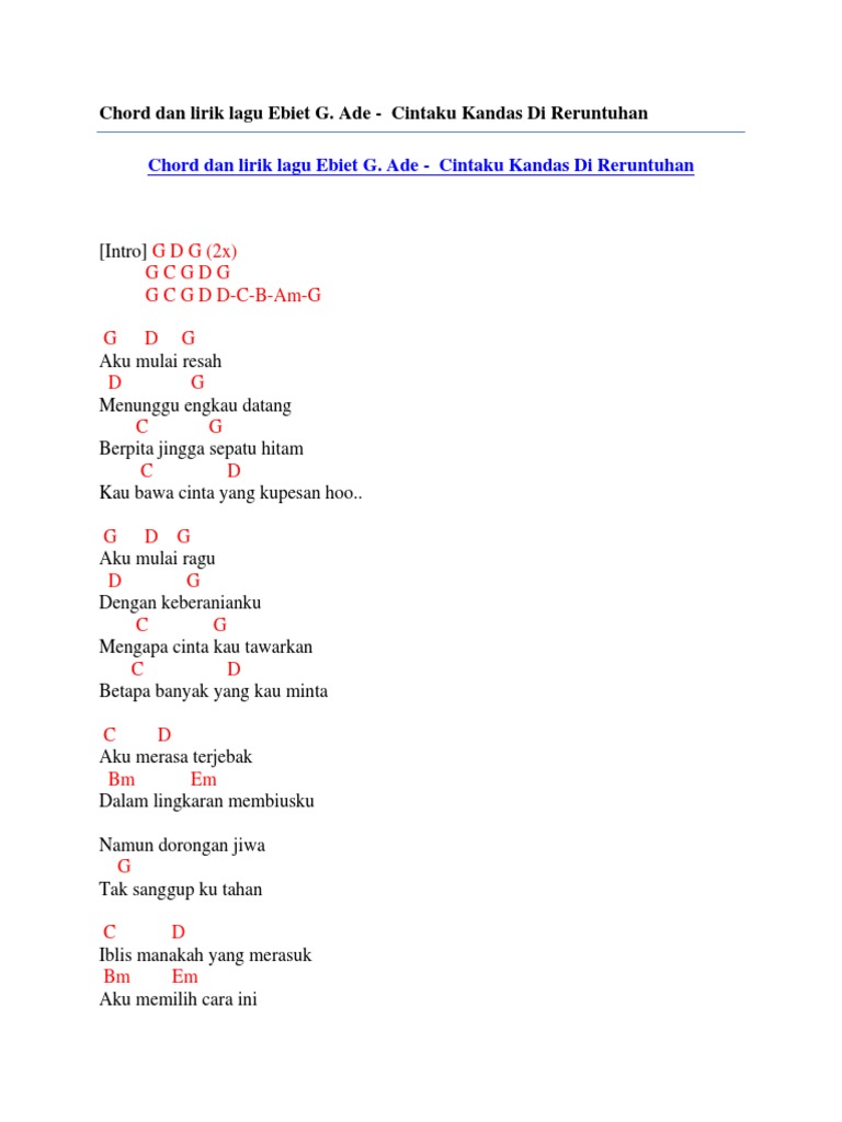 Yeh Poh - Karangasem. Ini Bukan Nosstress - Kandas Capo fret 1 C F G C Perahu berlayar tanpa arah C F G C Dan aku cuma bisa memandang C F G C Kuat ombak membawa jauh C F G C Berlalu dan melambai padaku F G Harapan yang sederhana Am Kau cepat pulang F G Em Karna rindu yang sama seperti dulu F G C Tak akan ada F G C Lagi tanda tanya F G C Tentang kenapa F G Aku merindu. Blog ini saya buat untuk berbagi cerita informasi dan pengetahuan.